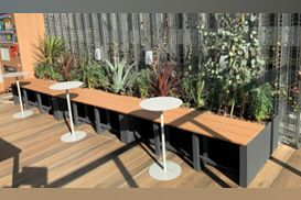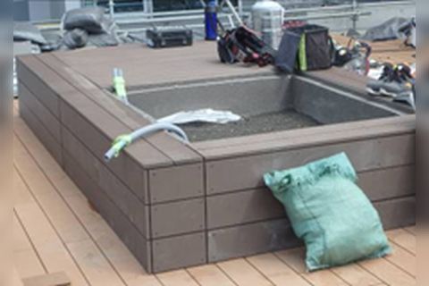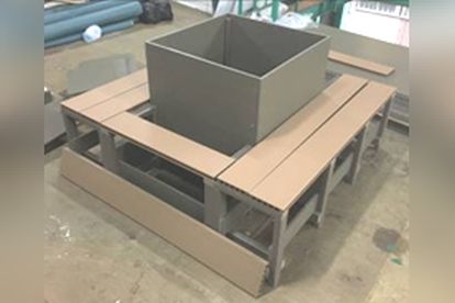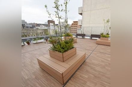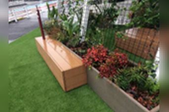 ②骨材リプラ角材にデッキ材張付けしたベンチ