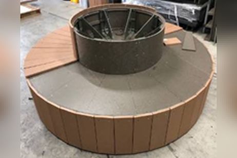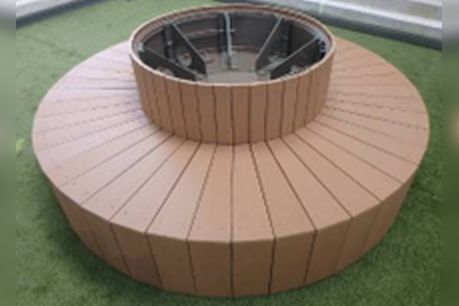 ②リプラ板・角材にデッキ材張りした円形ベンチ