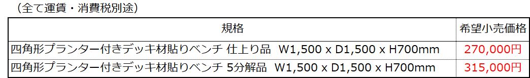 ③デッキ材張り四角形ベンチ 1,500x1,500xH700mm