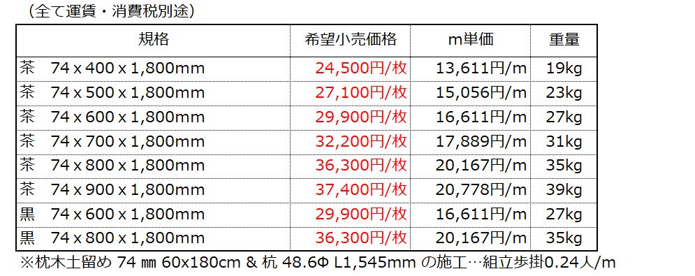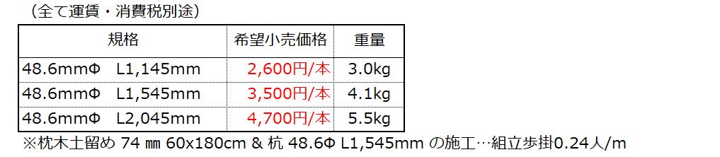 - 通りと高さが決まった杭の上に枕木板を被せるだけなので設置が楽にできる