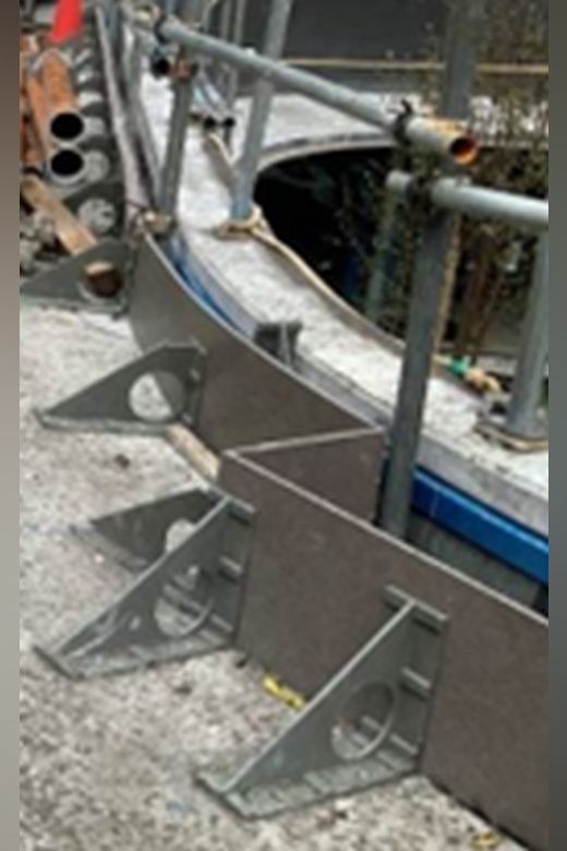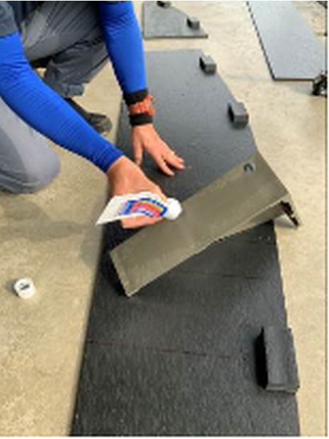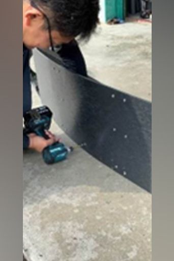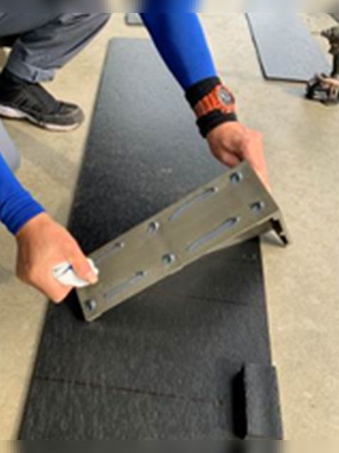 三角補強板を曲がりに合わせる