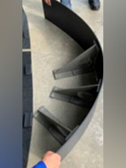 きつい曲面なら三角補強板を300mm位の間隔で設置する